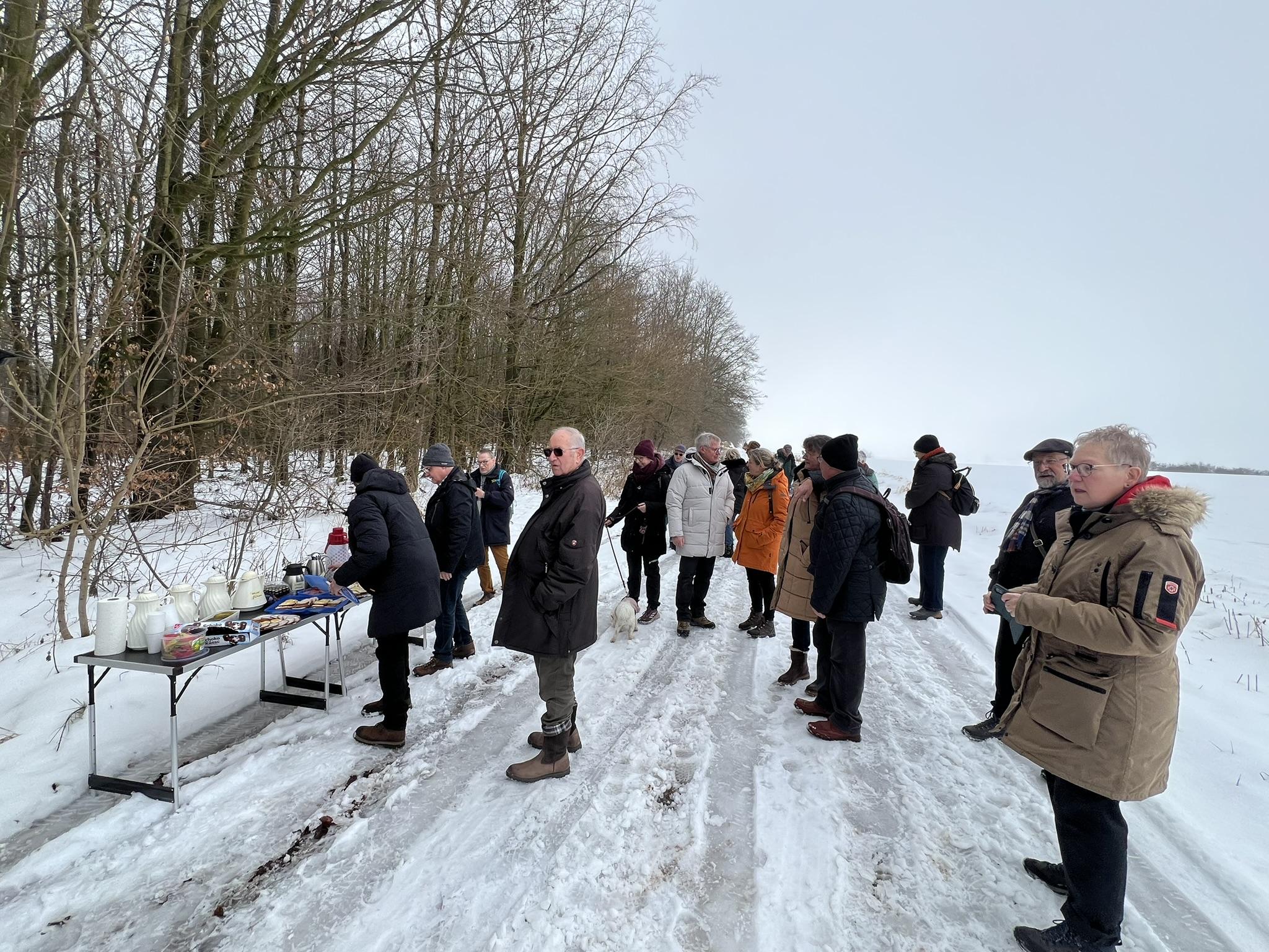 In diesem Jahr konnte durch eine schöne Schneelandschaft gewandert werden. Nach etwa der Hälfte der Strecke wartete ein Zwischenstopp auf die Wanderer. Hier war zur Stärkung ein kleiner Imbiss und warme Getränke vorbereitet.