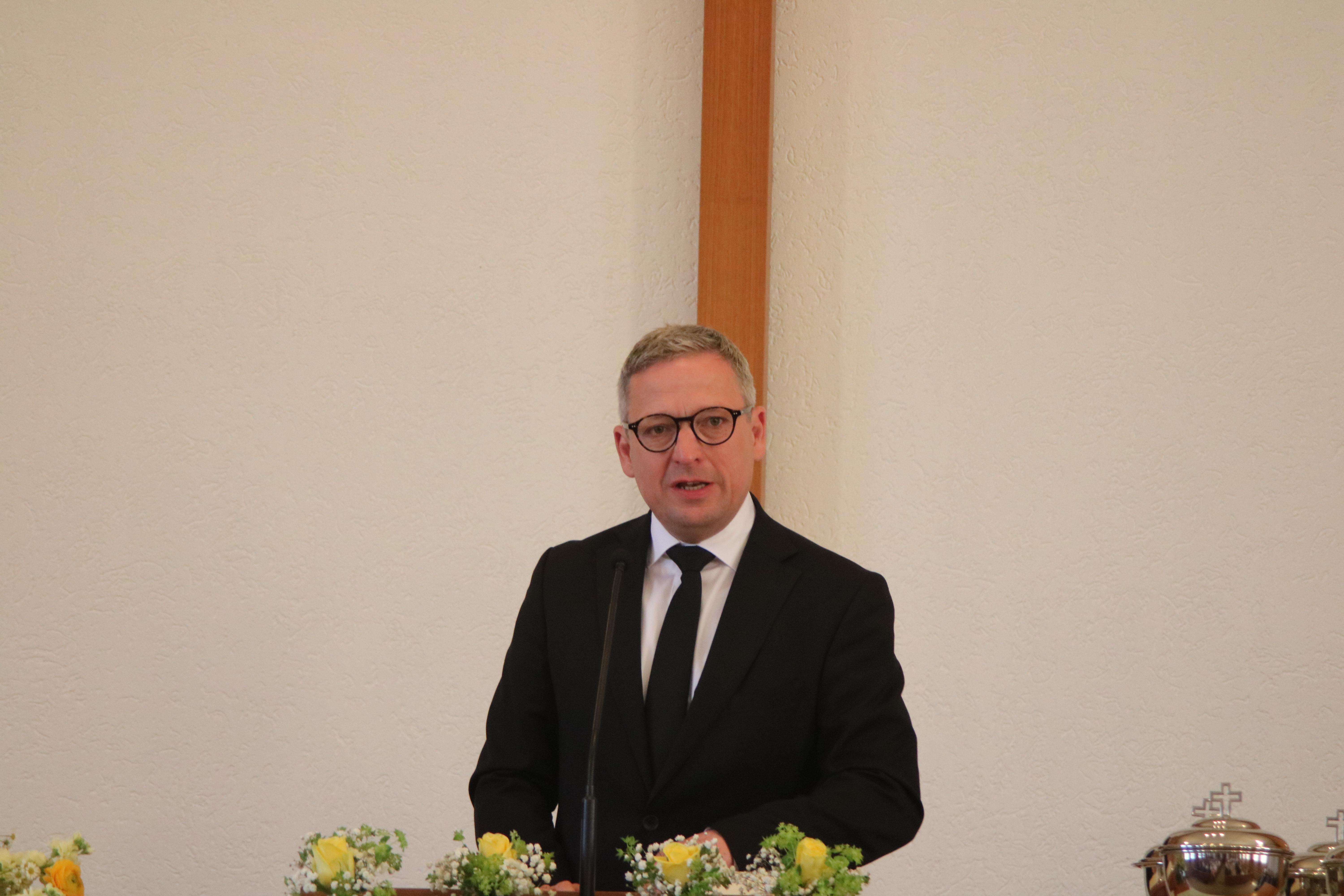 Zum Predigtbeitrag wurde Apostel Ralf Vicariesmann gebeten. In seinem Dienen ging er noch auf die Wendepunkte im Leben der Jünger Jesu ein. Als sich Jesus nach der Auferstehung in ihrem Kreis das erste Mal zeigte, begegnete er Ihnen mit den Worten „Friede sei mit euch“. Auch Maria erfuhr einen Wendepunkt am Grab Jesu, als er sie mit ihrem Namen ansprach, so Apostel Vicariesmann. Die Kraft des Auferstandenen könne auch den Gläubigen heute Ruhe im Herzen schenken und neuen Mut geben. Auch in schwierigen Situationen. Besonders im heiligen Abendmahl sei diese Kraft erlebbar.